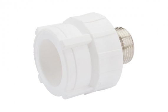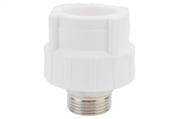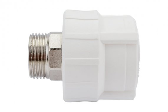 Комбинированные полипропиленовые фитинги имеют интегрированную латунную резьбовую вставку (закладную Латунь марки CW617N) с никелевым покрытием и служат для перехода на резьбовое трубное соединение. На резьбовой части фитинга имеется шестигранник, за который муфта удерживается при затяжке.