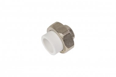 Комбинированные разъемные полипропиленовые фитинги имеют накидную гайку и резьбовую втулку из латуни марки CW617N с никелированным покрытием и служат для получения разъемного соединения. На резьбовой части фитинга имеется шестигранник, за который муфта удерживается при затяжке. Герметичность разъемного соединения достигается благодаря плоскому уплотнительному кольцу из EPDM.