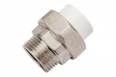 Комбинированные разъемные полипропиленовые фитинги имеют накидную гайку и резьбовую втулку из латуни марки CW617N с никелированным покрытием и служат для получения разъемного соединения. На резьбовой части фитинга имеется шестигранник, за который муфта удерживается при затяжке. Герметичность разъемного соединения достигается благодаря плоскому уплотнительному кольцу из EPDM.