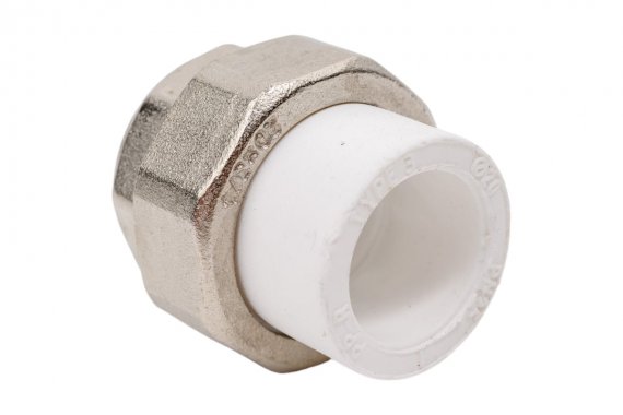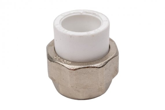 Комбинированные разъемные полипропиленовые фитинги имеют накидную гайку и резьбовую втулку из латуни марки CW617N с никелированным покрытием и служат для получения разъемного соединения. На резьбовой части фитинга имеется шестигранник, за который муфта удерживается при затяжке. Герметичность разъемного соединения достигается благодаря уплотнительному кольцу с круглым сечением из EPDM.