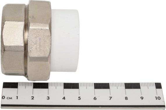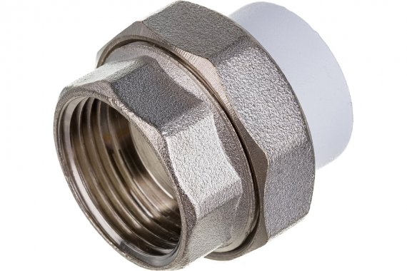 Комбинированные разъемные полипропиленовые фитинги имеют накидную гайку и резьбовую втулку из латуни марки CW617N с никелированным покрытием и служат для получения разъемного соединения. На резьбовой части фитинга имеется шестигранник, за который муфта удерживается при затяжке. Герметичность разъемного соединения достигается благодаря уплотнительному кольцу с круглым сечением из EPDM.