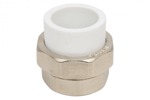 Комбинированные разъемные полипропиленовые фитинги имеют накидную гайку и резьбовую втулку из латуни марки CW617N с никелированным покрытием и служат для получения разъемного соединения. На резьбовой части фитинга имеется шестигранник, за который муфта удерживается при затяжке. Герметичность разъемного соединения достигается благодаря уплотнительному кольцу с круглым сечением из EPDM.