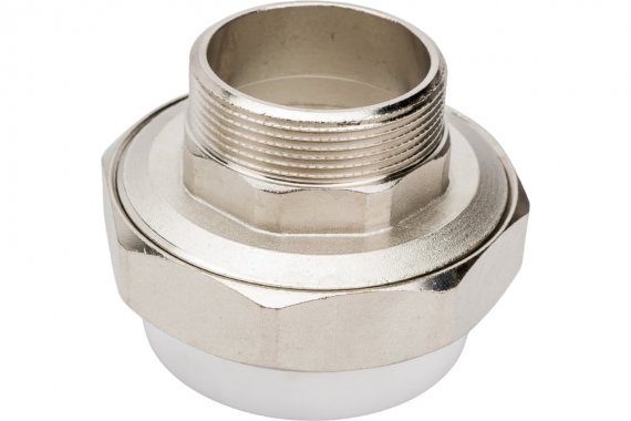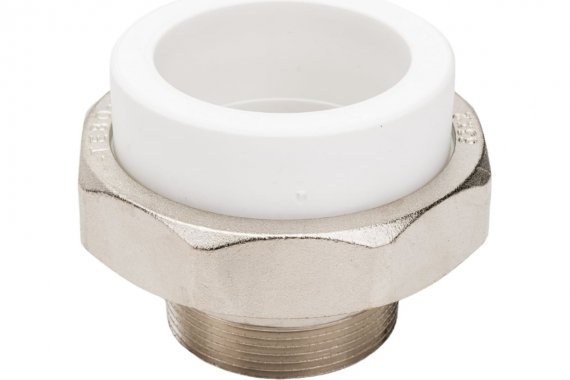 Комбинированные разъемные полипропиленовые фитинги имеют накидную гайку и резьбовую втулку из латуни марки CW617N с никелированным покрытием и служат для получения разъемного соединения. На резьбовой части фитинга имеется шестигранник, за который муфта удерживается при затяжке. Герметичность разъемного соединения достигается благодаря уплотнительному кольцу с круглым сечением из EPDM.