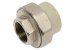 Комбинированные разъемные полипропиленовые фитинги имеют накидную гайку и резьбовую втулку из латуни марки CW617N с никелированным покрытием и служат для получения разъемного соединения. На резьбовой части фитинга имеется шестигранник, за который муфта удерживается при затяжке. Герметичность разъемного соединения достигается благодаря плоскому уплотнительному кольцу из EPDM.