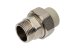 Комбинированные разъемные полипропиленовые фитинги имеют накидную гайку и резьбовую втулку из латуни марки CW617N с никелированным покрытием и служат для получения разъемного соединения. На резьбовой части фитинга имеется шестигранник, за который муфта удерживается при затяжке. Герметичность разъемного соединения достигается благодаря плоскому уплотнительному кольцу из EPDM.