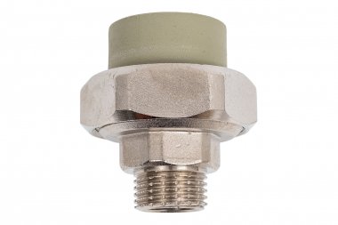 Комбинированные разъемные полипропиленовые фитинги имеют накидную гайку и резьбовую втулку из латуни марки CW617N с никелированным покрытием и служат для получения разъемного соединения. На резьбовой части фитинга имеется шестигранник, за который муфта удерживается при затяжке. Герметичность разъемного соединения достигается благодаря плоскому уплотнительному кольцу из EPDM.