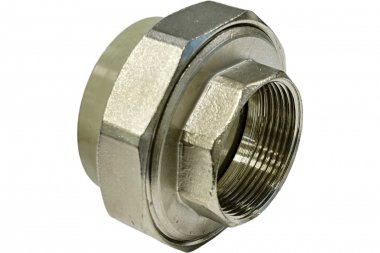 Комбинированные разъемные полипропиленовые фитинги имеют накидную гайку и резьбовую втулку из латуни марки CW617N с никелированным покрытием и служат для получения разъемного соединения. На резьбовой части фитинга имеется шестигранник, за который муфта удерживается при затяжке. Герметичность разъемного соединения достигается благодаря уплотнительному кольцу с круглым сечением из EPDM.