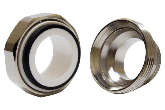 Комбинированные разъемные полипропиленовые фитинги имеют накидную гайку и резьбовую втулку из латуни марки CW617N с никелированным покрытием и служат для получения разъемного соединения. На резьбовой части фитинга имеется шестигранник, за который муфта удерживается при затяжке. Герметичность разъемного соединения достигается благодаря конструкции евроконус и уплотнительному кольцу с круглым сечением из EPDM.