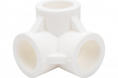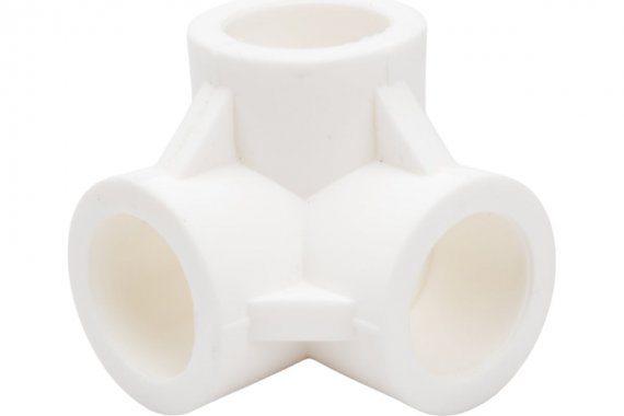 Тройник двухплоскостной полипропиленовый TEBO technics для создания разветвления трубопровода в двух плоскостях равного диаметра трубы.