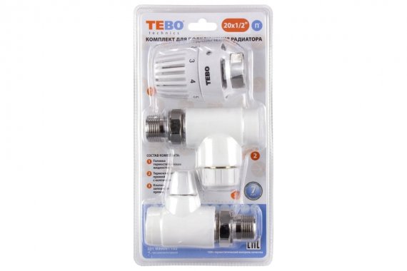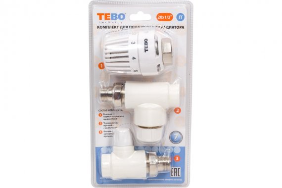 Tebo 030061101 C--TB Комплект №1 1/2 (Терм.прям.с колпачком 20x1/2, кл.запорный прям. 20x1/2, терм. головка)