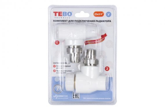 Tebo 030061132 C--TB Комплект №8 3/4 (Терм.угл.с колпачком 25x3/4, кл.запорный угл. 25x3/4)
