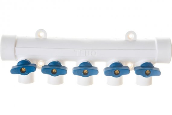 Полипропиленовый коллектор TEBO technics применяется в системах отопления и водоснабжения и предназначен для распределения потока по нескольким контурам. Удобен тем, что позволяет сразу вварить трубу из PPR.