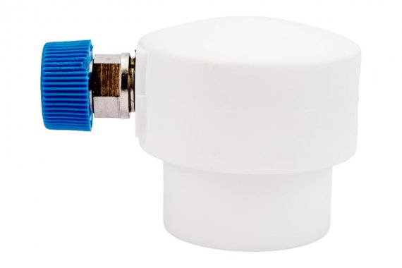 Заглушка полипропиленовая TEBO technics с встроенным воздухоотводчиком для коллектора. Присоединение производится путем диффузионной сварки в раструб коллектора.