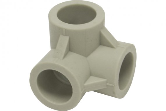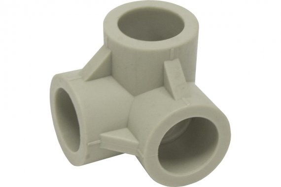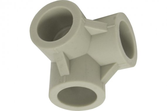 Тройник двухплоскостной полипропиленовый TEBO technics для создания разветвления трубопровода в двух плоскостях равного диаметра трубы.