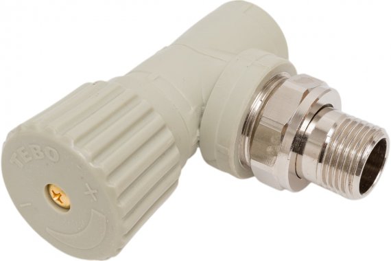 Вентиль ручной регулировки TEBO technics для подключения радиаторов к полипропиленовым (PPR) трубопроводам системы отопления. Наличие полусгонов позволяет монтировать и демонтировать клапаны без демонтажа трубопровода.