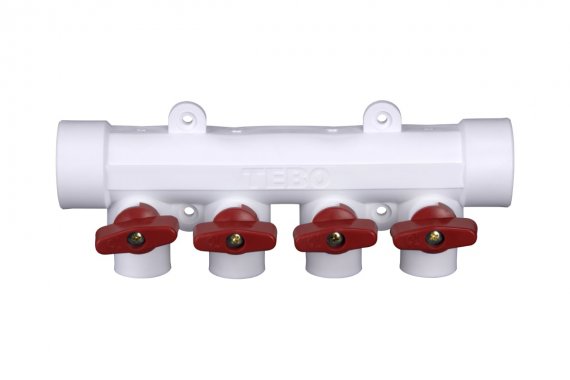 Полипропиленовый коллектор TEBO technics применяется в системах отопления и водоснабжения и предназначен для распределения потока по нескольким контурам. Удобен тем, что позволяет сразу вварить трубу из PPR.