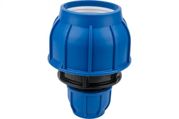 Корпус компрессионного фитинга TEBO technics отлит из черного полипропилена. Соединение накидной гайки и корпуса осуществляется при помощи трапециевидной резьбы, позволяющей выдерживать большие осевые нагрузки. Накидная гайка произведена из полипропилена синего цвета, который имеет высокую прочность. Уплотнительное кольцо круглого сечения изготовлено из бутадиен-нитрильного каучука (NBR) обеспечивает герметичное соединение ПЭ трубы с корпусом фитинга. Запрессовывающая втулка из полипропилена удерживает уплотнительное кольцо в фиксированном положении. Разрезное зажимное кольцо отлито из полиацэталя — материала, который обладает более высокой твердостью, чем полиэтилен. Благодаря специальному профилю внутренней поверхности, зажимное кольцо предотвращает выдавливание полиэтиленовой трубы из корпуса внутренним давлением воды.