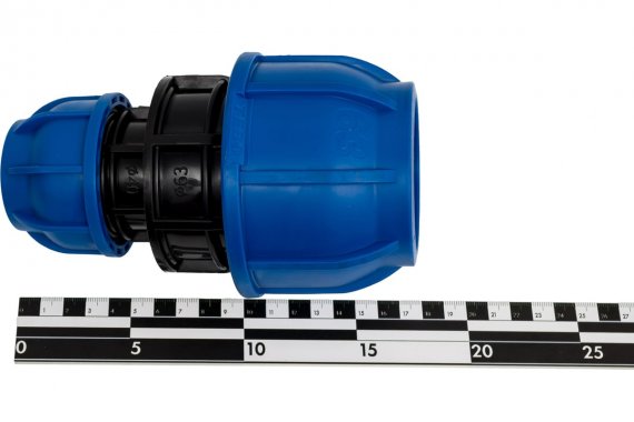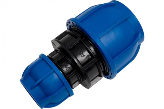 Корпус компрессионного фитинга TEBO technics отлит из черного полипропилена. Соединение накидной гайки и корпуса осуществляется при помощи трапециевидной резьбы, позволяющей выдерживать большие осевые нагрузки. Накидная гайка произведена из полипропилена синего цвета, который имеет высокую прочность. Уплотнительное кольцо круглого сечения изготовлено из бутадиен-нитрильного каучука (NBR) обеспечивает герметичное соединение ПЭ трубы с корпусом фитинга. Запрессовывающая втулка из полипропилена удерживает уплотнительное кольцо в фиксированном положении. Разрезное зажимное кольцо отлито из полиацэталя — материала, который обладает более высокой твердостью, чем полиэтилен. Благодаря специальному профилю внутренней поверхности, зажимное кольцо предотвращает выдавливание полиэтиленовой трубы из корпуса внутренним давлением воды.