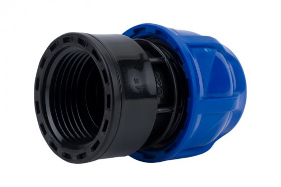 Корпус компрессионного фитинга TEBO technics отлит из черного полипропилена. Соединение накидной гайки и корпуса осуществляется при помощи трапециевидной резьбы, позволяющей выдерживать большие осевые нагрузки. Накидная гайка произведена из полипропилена синего цвета, который имеет высокую прочность. Уплотнительное кольцо круглого сечения изготовлено из бутадиен-нитрильного каучука (NBR) обеспечивает герметичное соединение ПЭ трубы с корпусом фитинга. Запрессовывающая втулка из полипропилена удерживает уплотнительное кольцо в фиксированном положении. Разрезное зажимное кольцо отлито из полиацэталя — материала, который обладает более высокой твердостью, чем полиэтилен. Благодаря специальному профилю внутренней поверхности, зажимное кольцо предотвращает выдавливание полиэтиленовой трубы из корпуса внутренним давлением воды.