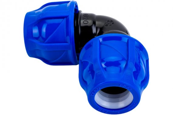Корпус компрессионного фитинга TEBO technics отлит из черного полипропилена. Соединение накидной гайки и корпуса осуществляется при помощи трапециевидной резьбы, позволяющей выдерживать большие осевые нагрузки. Накидная гайка произведена из полипропилена синего цвета, который имеет высокую прочность. Уплотнительное кольцо круглого сечения изготовлено из бутадиен-нитрильного каучука (NBR) обеспечивает герметичное соединение ПЭ трубы с корпусом фитинга. Запрессовывающая втулка из полипропилена удерживает уплотнительное кольцо в фиксированном положении. Разрезное зажимное кольцо отлито из полиацэталя — материала, который обладает более высокой твердостью, чем полиэтилен. Благодаря специальному профилю внутренней поверхности, зажимное кольцо предотвращает выдавливание полиэтиленовой трубы из корпуса внутренним давлением воды.